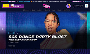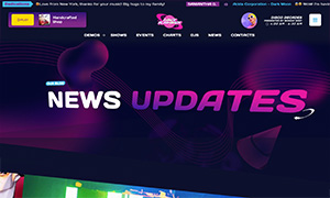 To create this demo, a range of vibrant magenta and bold purple hues are used to create this depth effect that brings you fully inside the site. Combined with details of cyan and yellow, this increases the sense of dynamism and makes navigating through the site a truly live experience, recreating the feeling of being in a 90’s dance disco. The Days One typography captures the visual of this demo design and emphasises this groovy look, by adding a touch of contemporary style.