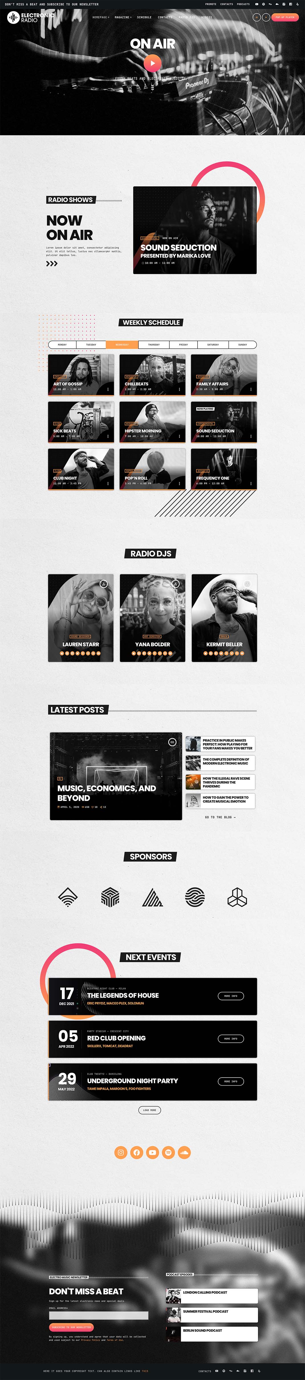 The Pro Radio WordPress Theme has now a new juicy demo included and ready to be installed! A beautiful and stylish demo for any Elemectronic music radio, perfect for Electro, Drum’n Bass, Techno and underground music. Featuring 4 super neat home pages for Elementor with tons of radio station elements such as custom players, shows schedule, podcasts, charts, events and news. Create now your radio website!