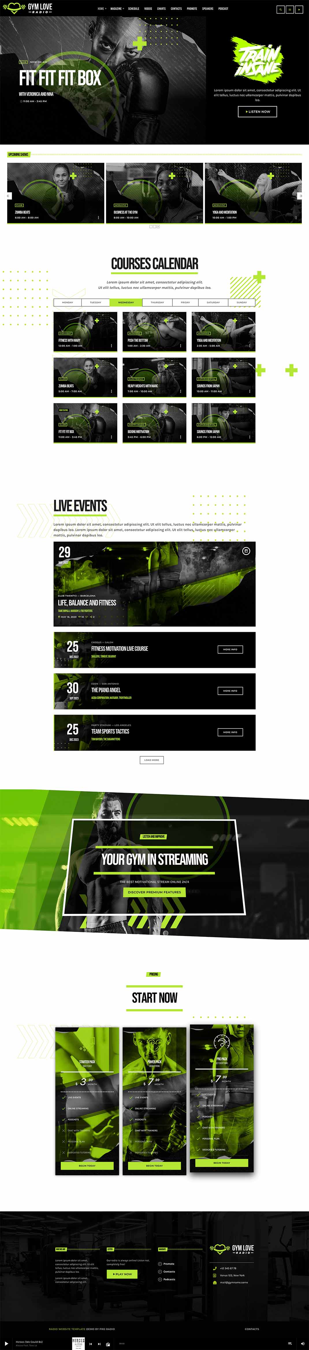 Lots of gyms have their own radio station nowadays, and this radio template is perfect for a brand new gym and training radio website. The schedule fits perfectly a training calendar, and matches the real schedule of youyr courses. You can also create multiple schedules, one for each class or trainer! The demo comes with lots of demo page templates for a gym radio: 6 home page templates, plus song charts, contacts, podcasts, team members and much more! Create your radio station today!