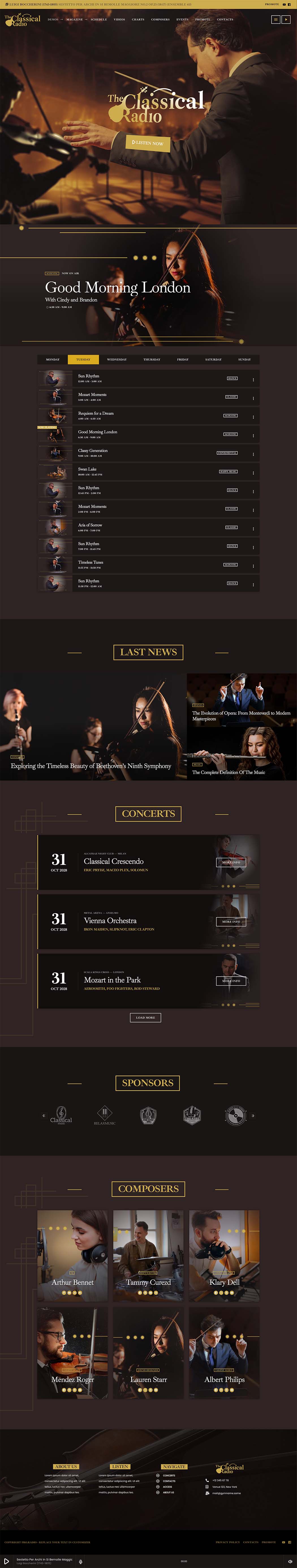 This complete radio station website template outstands for its elegant and sharp appearance, perfect for a classical music radio station.
