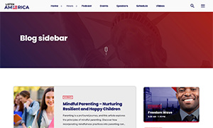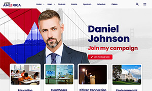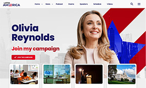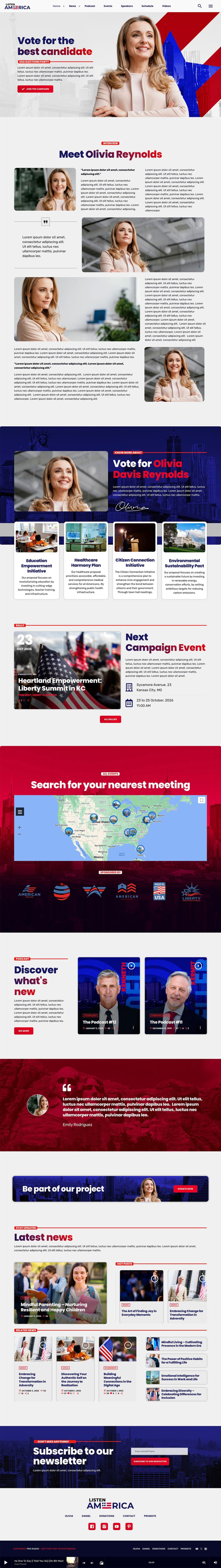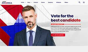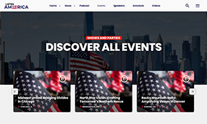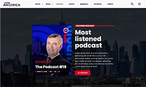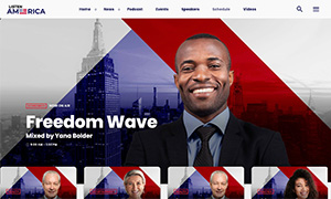 Discover this new political themed radio station website template Listen America: the ultimate radio station design to keep up to date with your radio thanks to this polished and professional style.