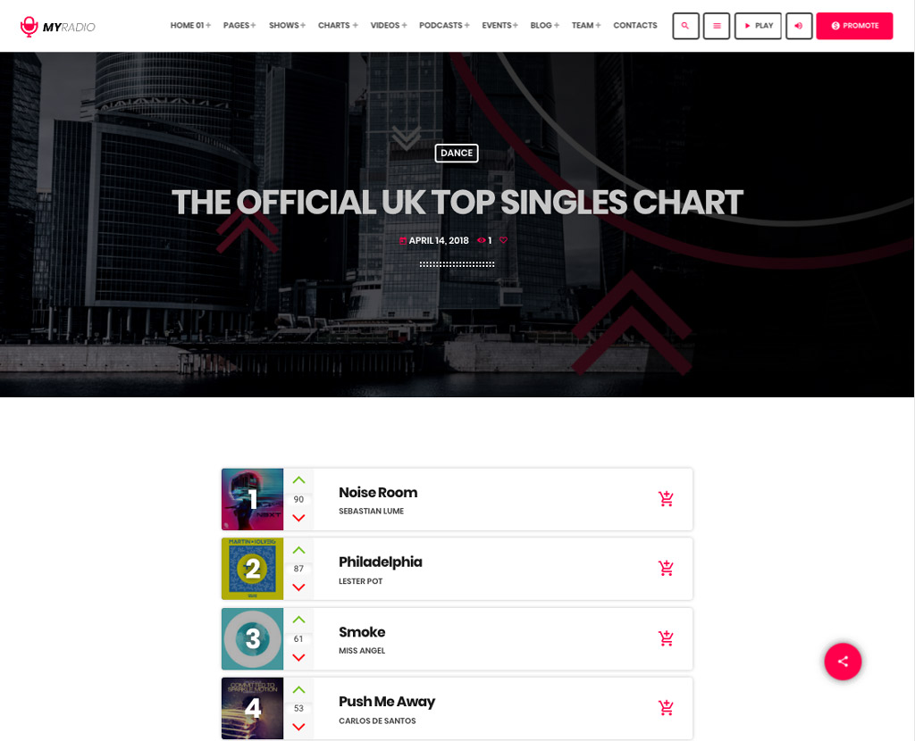 Add unlimited tracks, place an MP3, Soundcloud, Youtube or Spotify sample, allow user voting and automatically reorder the tracks of the chart by the highest votes!