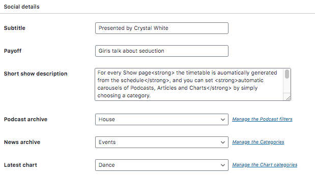 Simply choose the chart category from the show page to automatically embed the latest chart in the show page. Easily add chart tracklists anywhere with Elementor! You can also place charts in sidebars with a custom unique widgets. MP3 samples are now played straight in the radio player!