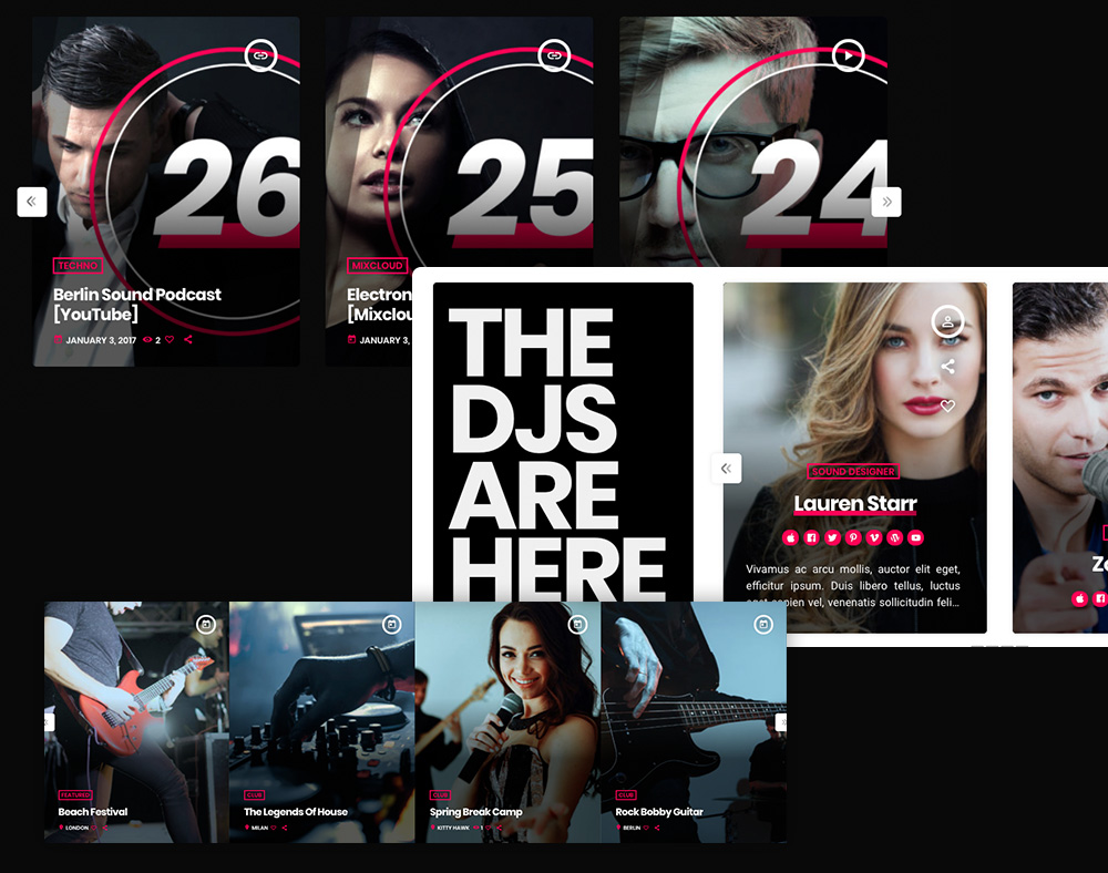 A dynamic carousel to display Events, Posts, Podcasts, Charts and more