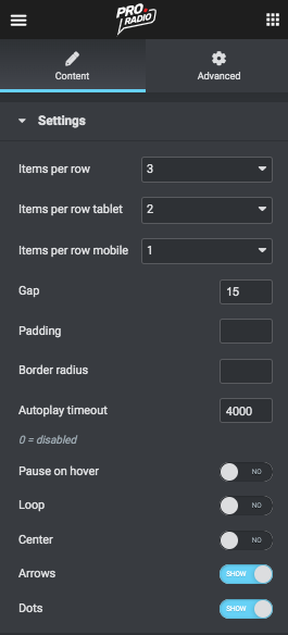 You can make a full width carousel or place it in a column: easily manage items per row and design settings.
