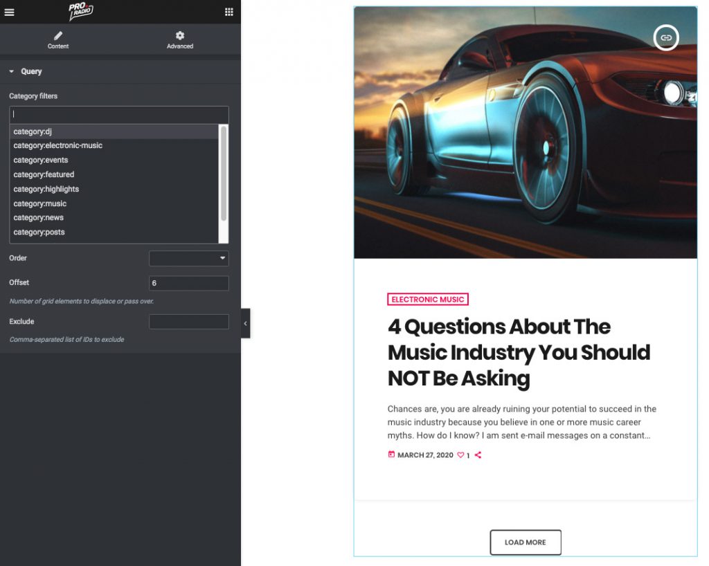 The “post list large” is an elemento born for blogging and magazine pages, based on the classic vertical design with the featured image on top, and the contents on bottom. The query can be crafted by category, order, offset and exclude parameters.