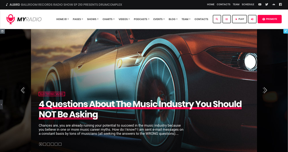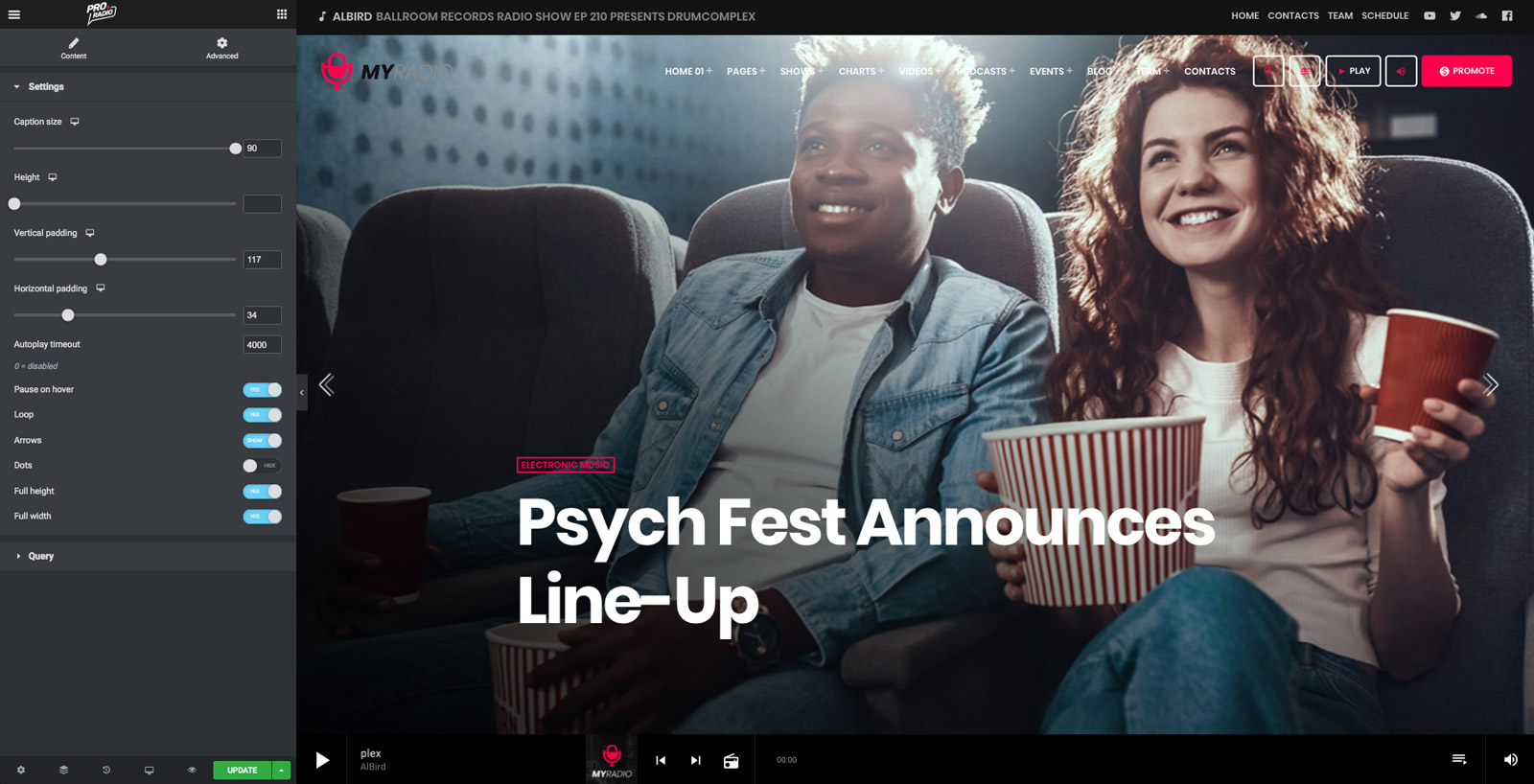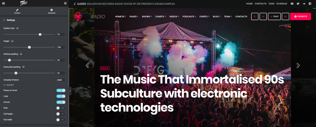Easily set the caption font size, slider height for multiple resolutions, vertical and horizontal padding, autoplay timeout and more: craft the perfect slider for any style of radio station website, fitting a “young and bold” or a “business and sober” design style, with ease!
