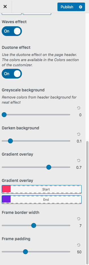 Check below the list of customizer settings available in