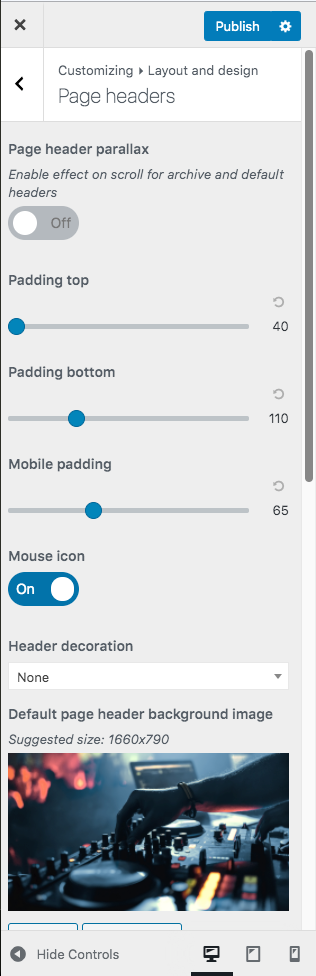 Page headers can be customized and styled to match your brand with the live customizer functionality. Pro.Radio adds stunning features as duotone, grayscale, overlay and gradients to create very unique results.