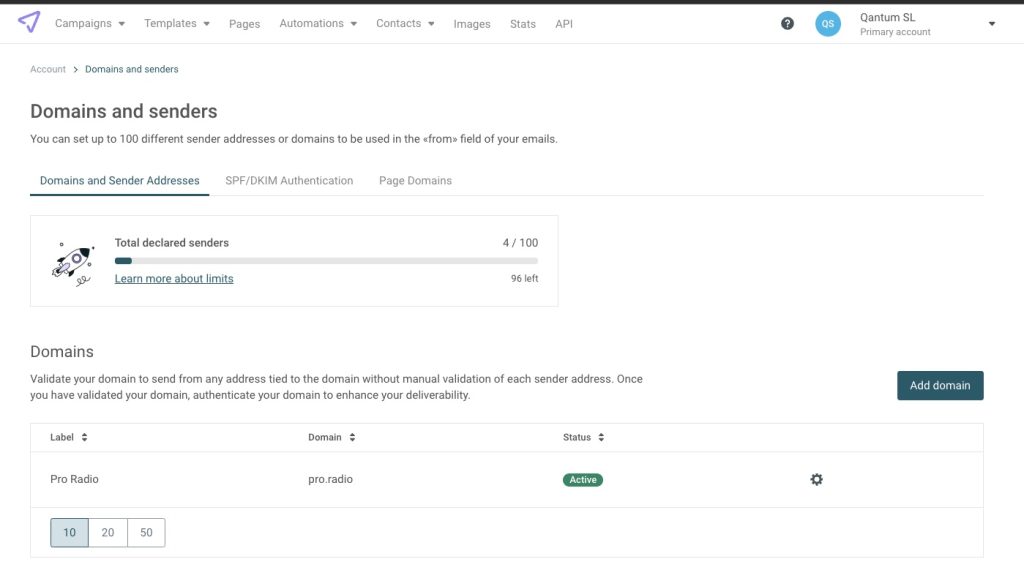 Once done, make sure to also set your sender addresses (which emails you want to send emails from).