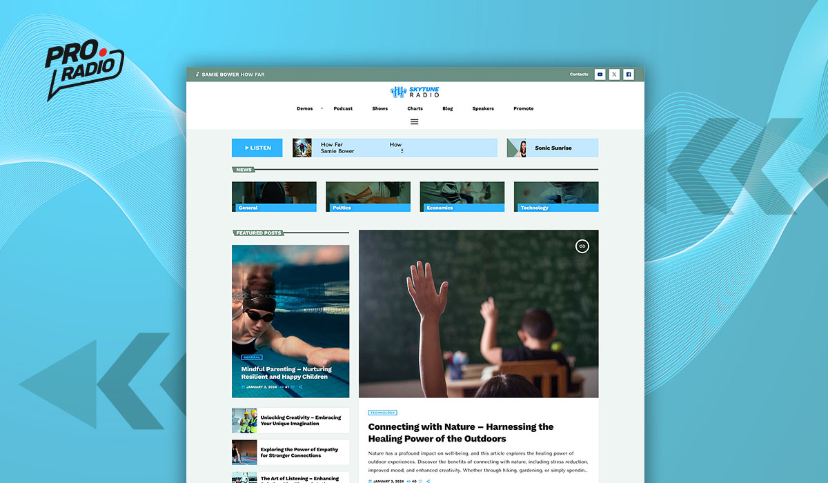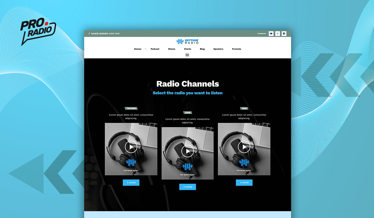 If you are looking to start a radio station website, Pro Radio WordPress Theme has the perfect website template for your radio! SkyTune Radio is a sleek and minimalist radio station website template that will enhance the online presence of any radio station.