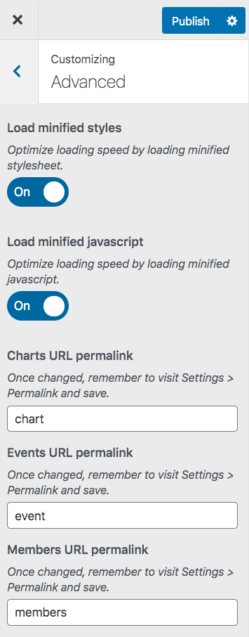 Just visit your WordPress customizer to meet the new Advanced section: you can enable javascript and CSS compression with a click! And unlike foreign plugins, we do this right, to avoid javascript or design issues.