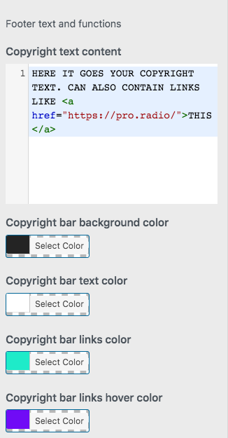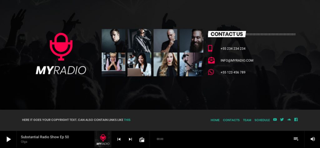 Manage directly basic information, menu, socials and links from the WordPress Live Customizer. Build easily the footer for your radio station website.