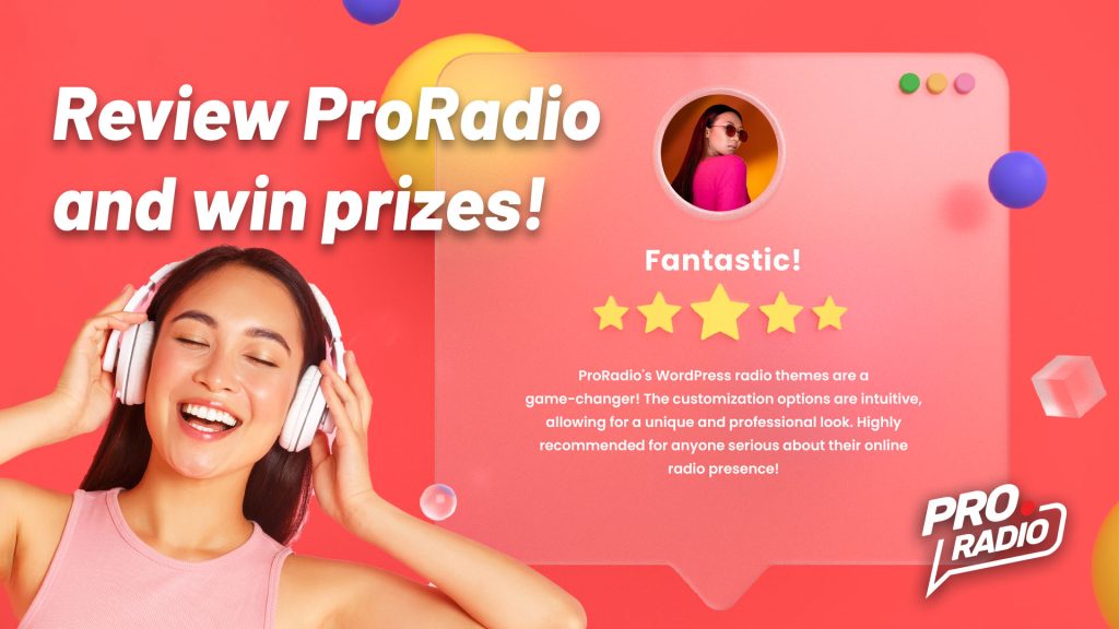 If so, we want to hear from you! Share your feedback and experiences using the Pro Radio WordPress theme for a chance to win amazing prizes. Your valuable insights will not only help us improve our product but also give you the opportunity to win a free license or a year of updates and support service for the Pro Radio theme.