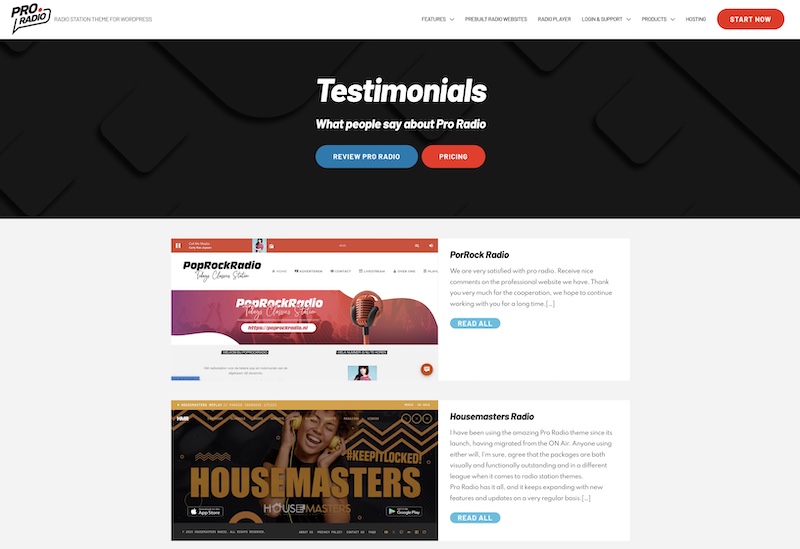 The selected reviews have been published with links to the respective radio station websites in our Testimonials page