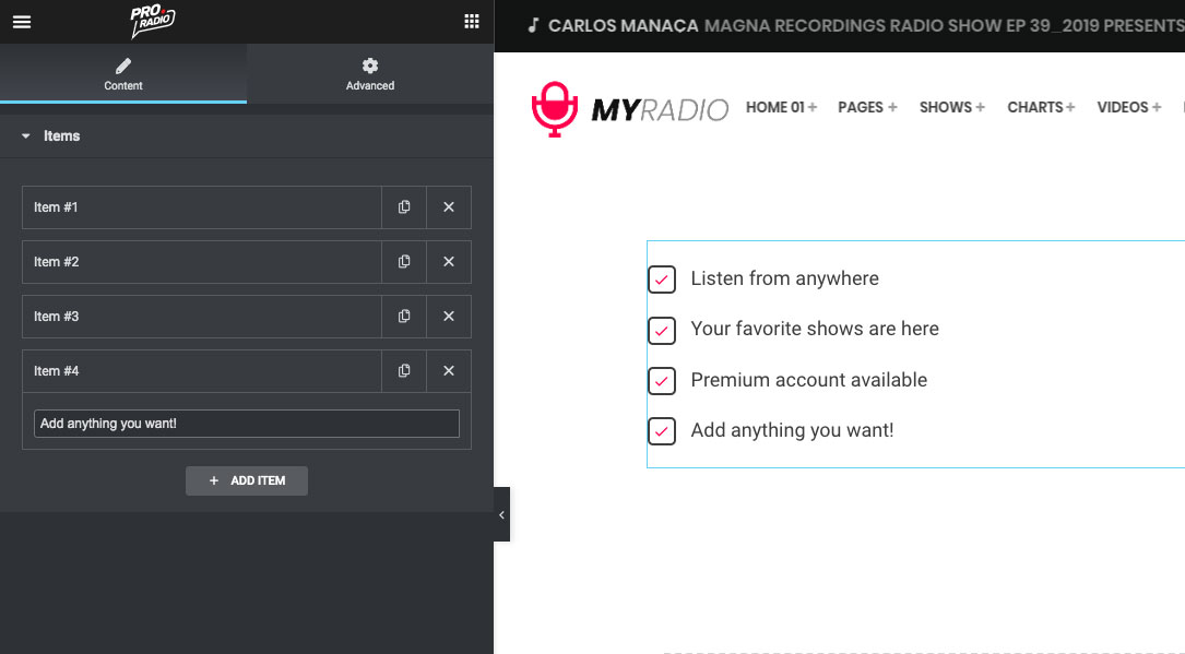 Useful to promote your radio features, affiliation plans, tutorials and more. Styled directly with your global customizer settings: fast and easy!