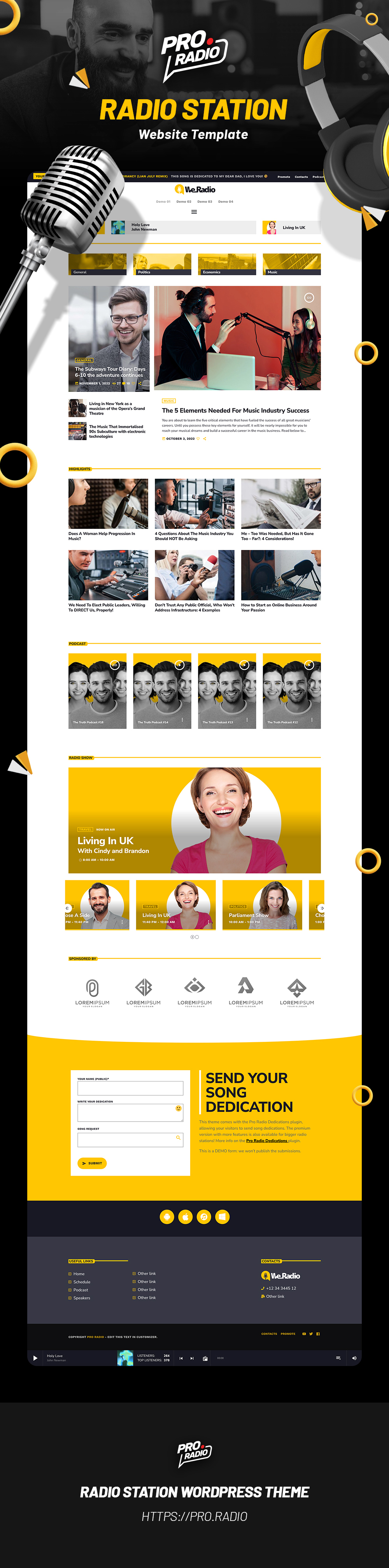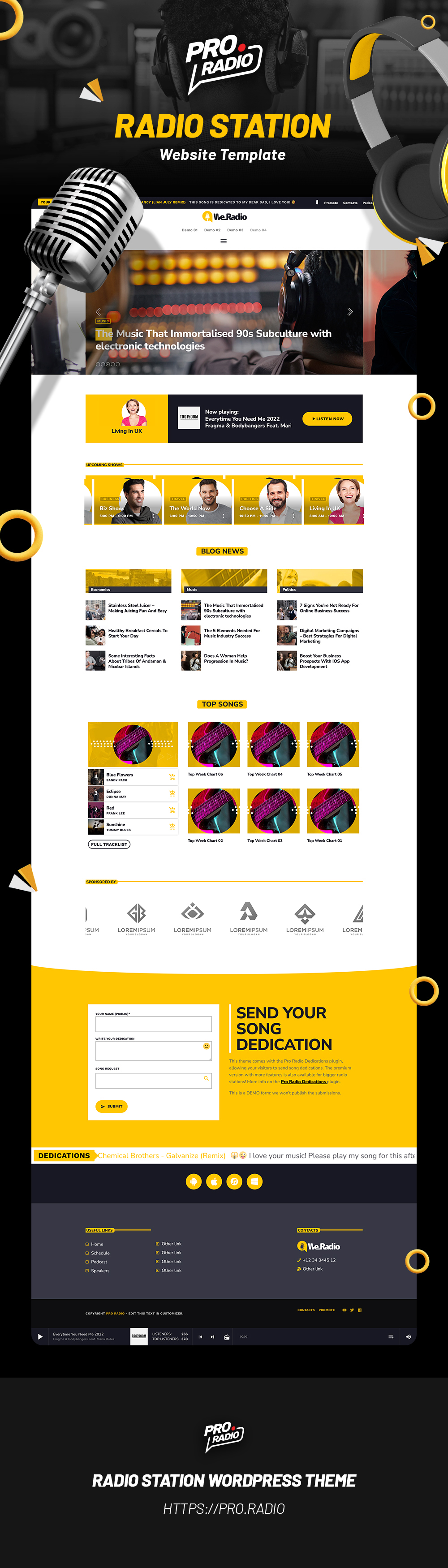 With our demo, you can make your own radio station website look just like ours! Every demo is included with the Pro Radio WordPress Theme, which can be downloaded at this link and imported in just one click using our automatic installer.