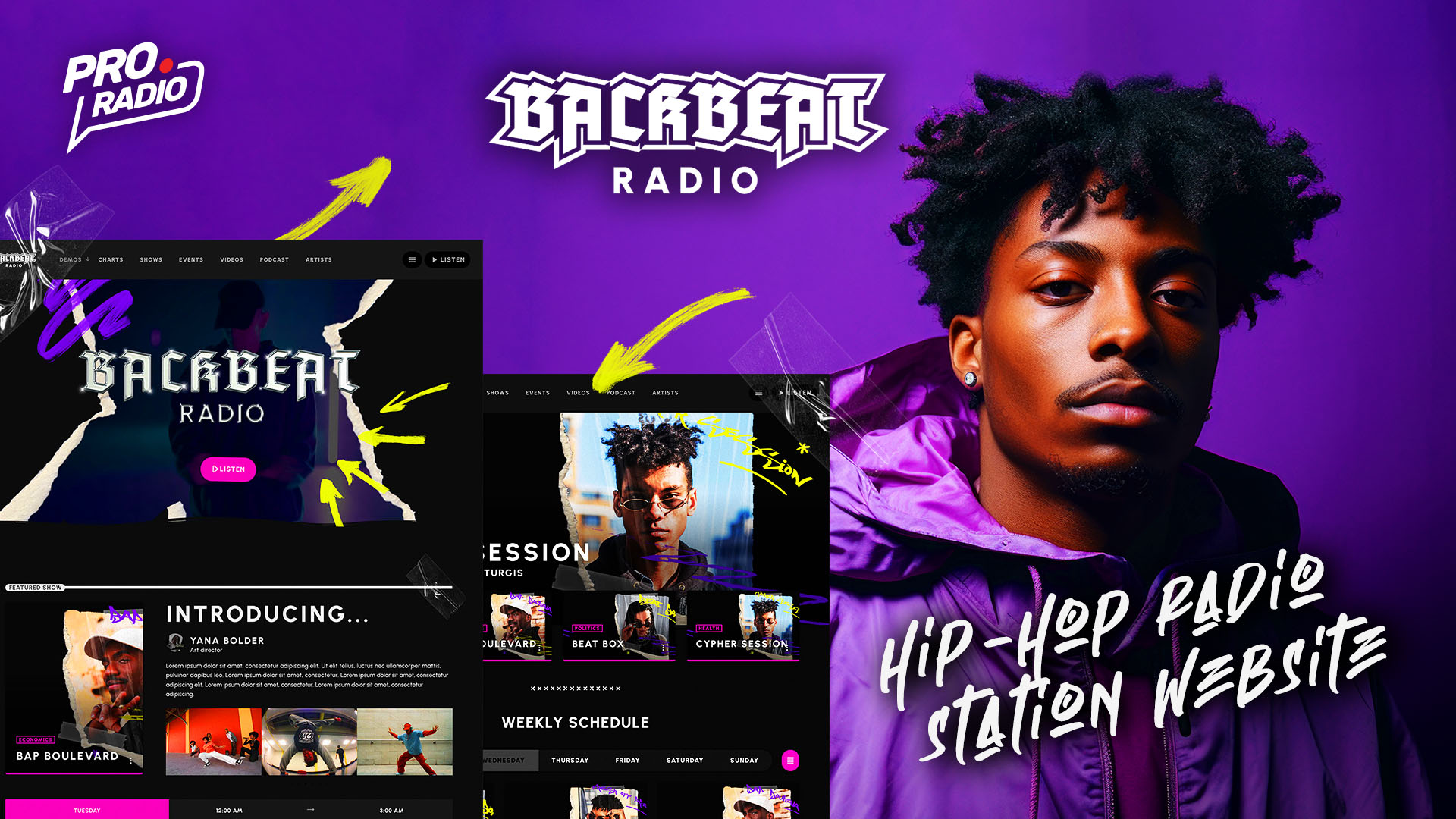 Are you ready to drop the hottest beats online and build a radio station website that embodies the raw energy and streetwise style of hip-hop? Look no further than the BackBeat Radio website template!