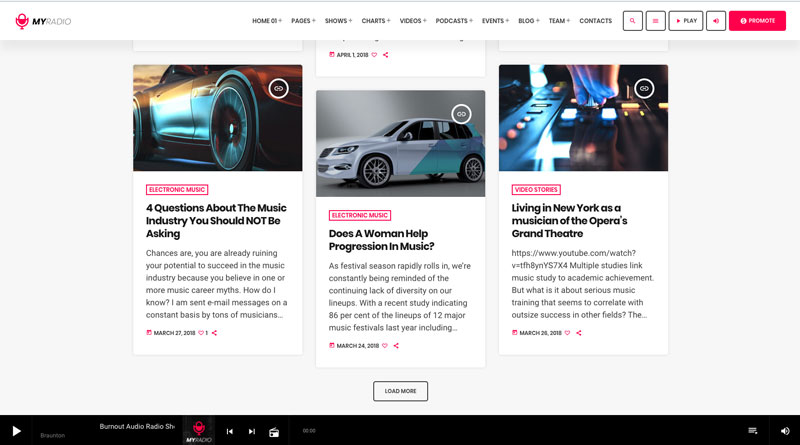 The Pro.Radio WordPress Theme has 6 built-in blog layout you can choose from.
