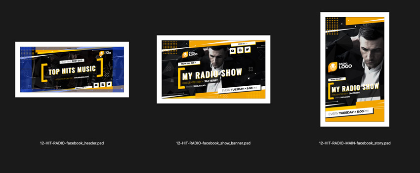 This pack of free Photoshop templates for your radio station Facebook page contains 3 templates: