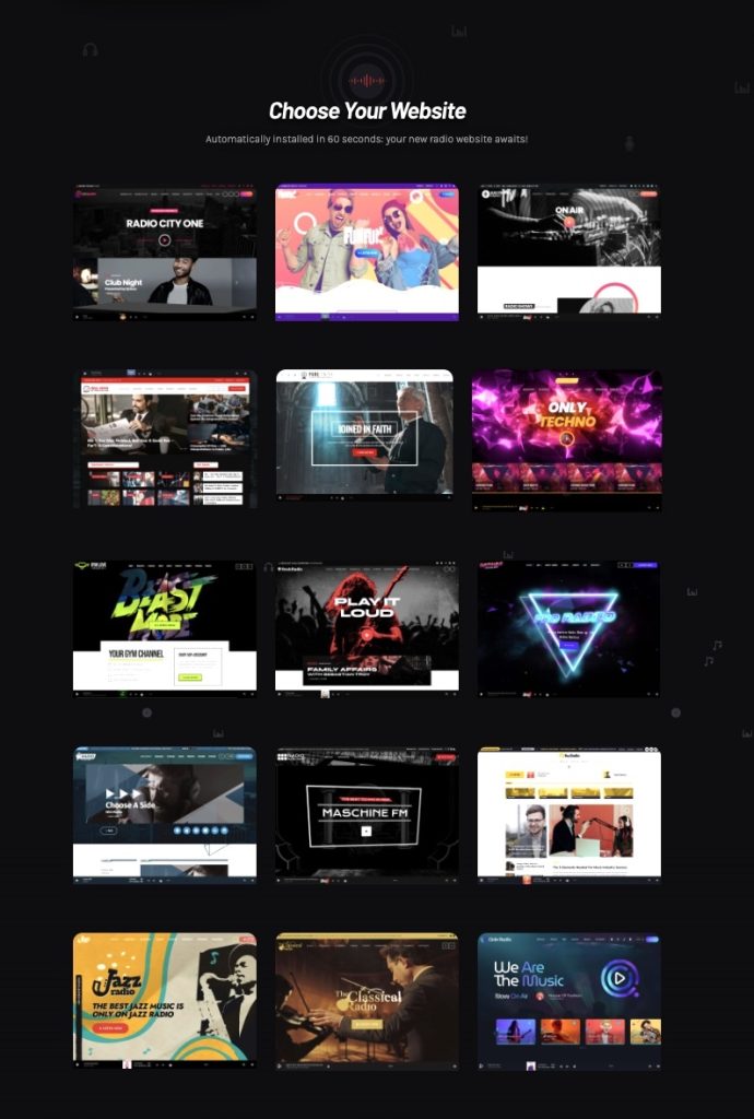 - Ready-to-Go Website: No need to start from scratch. Choose from stunning pre-built designs and customize them to fit your station’s brand.