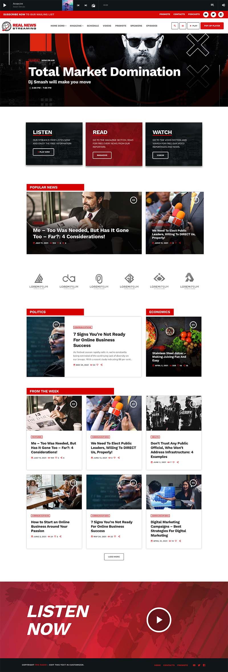 Any new demo is included with the Pro Radio theme for WordPress! using the one-click demo import, your website will look exactly like the demo.