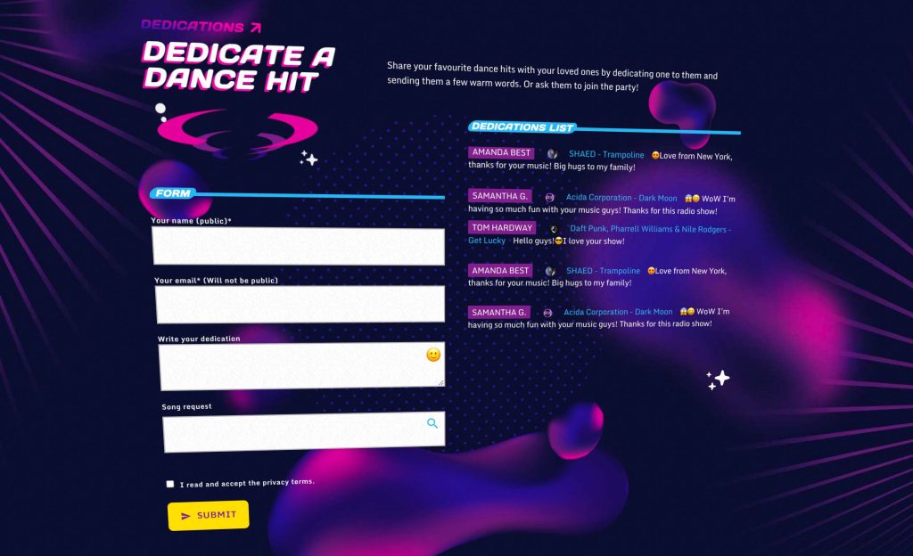 These playful references create a sense of belonging, making listeners feel like part of a special community. Take things a step further by encouraging interaction. Open the door for phone calls, WhatsApp messages, use our Pro Radio song dedications widget – anything that actively engages your audience during your shows. This interaction fosters a connection, drawing listeners closer and making them feel invested in the magic of your radio experience.