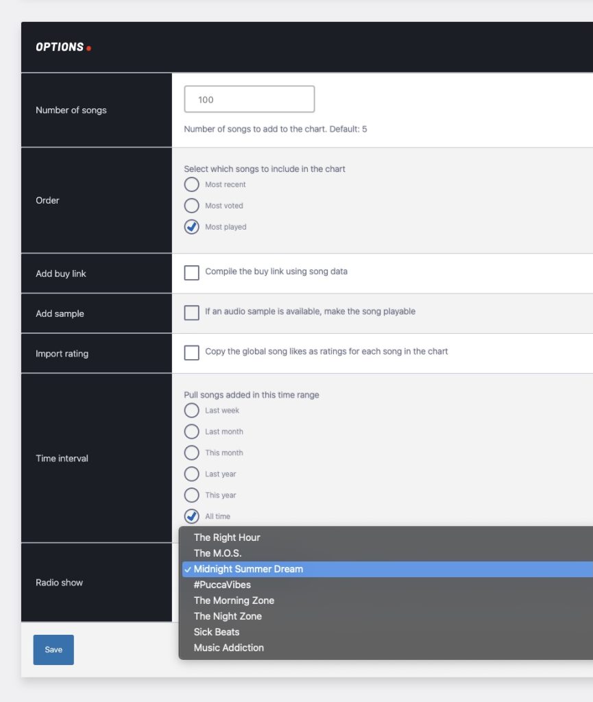 This feature does not add any load to your database. Instead, it uses existing data to filter songs by day and time, aligning with the scheduling information of the selected show. This seamless integration ensures you get accurate, show-specific charts without any extra effort.