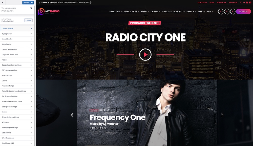 The Pro Radio WordPress theme offers an extensive range of customization options, with over 350 settings for colors, fonts, and design elements, enabling you to create a truly unique radio station website for any music genre.