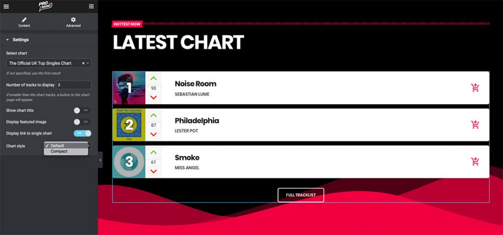The dynamic widgets of the proRadio Elementor plugin can automatically update every time you post a new content. This makes your updates much easier, simply post a new chart, and it will updatge everywhere you want.