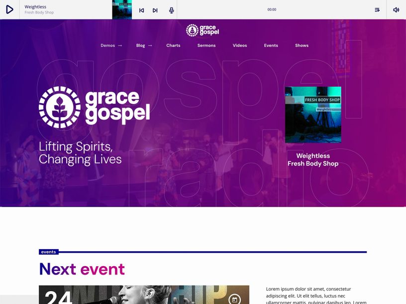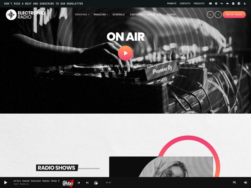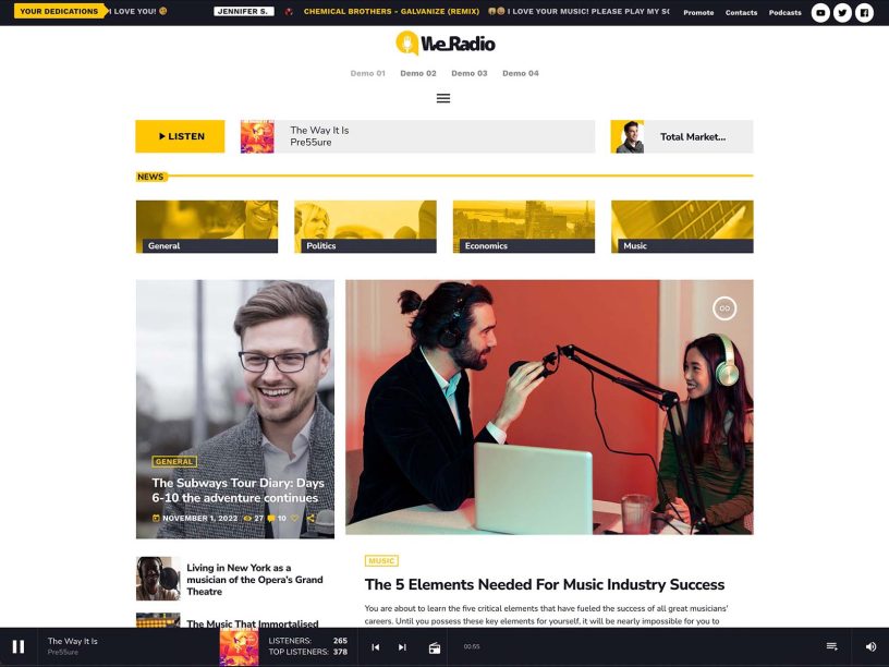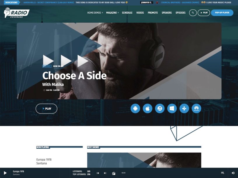 We provide a wide variety of prebuilt demo websites ready to use, preinstalled on your platform. Don’t worry about complicated installations: start your radio station website with ease.