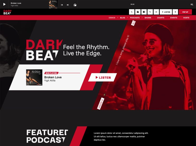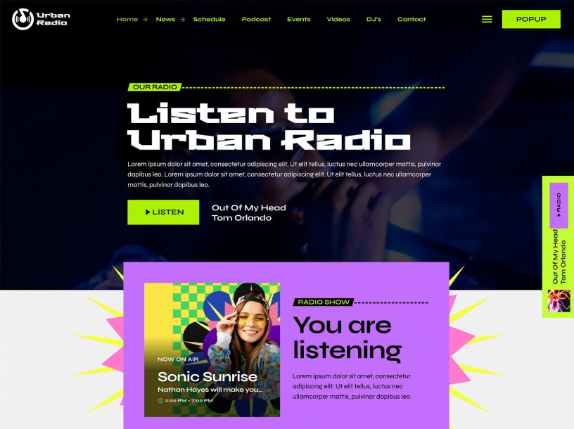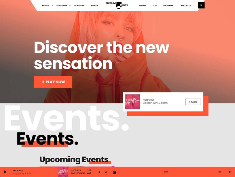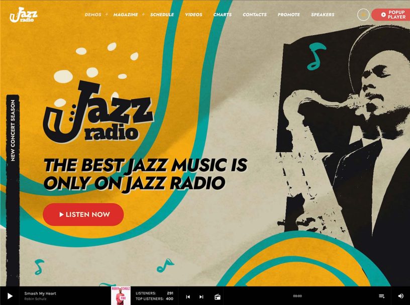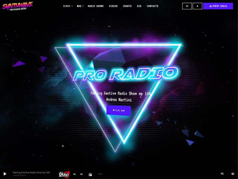 Radio shows schedule, song titles, custom players, events, blog news, sliders, carousels and more: any tool you need for your radio