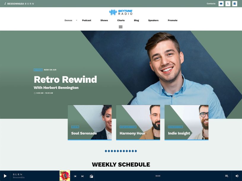 With Pro Radio you can build any radio station page with ease, including shwos schedule, players / more