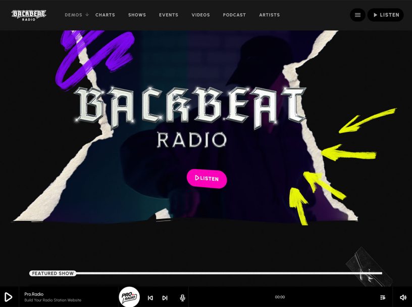 The All-In-One Radio Website is a full radio station website with pre-installed WordPress, Pro Radio WP Theme, any required plugin, and the demo contents (prebuilt website) of your choice.