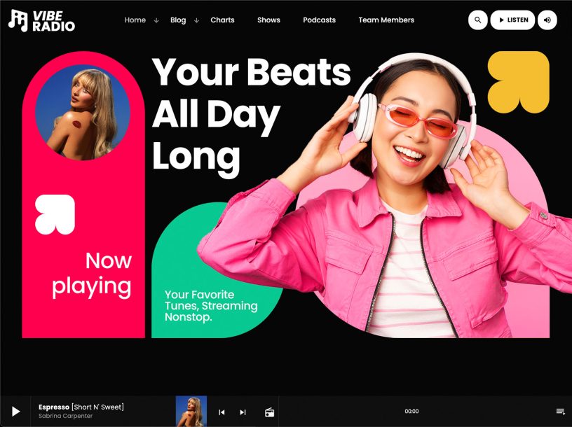 With powerful non-stop player, 40+ Pro Radio widgets for Elementor and 250+ options